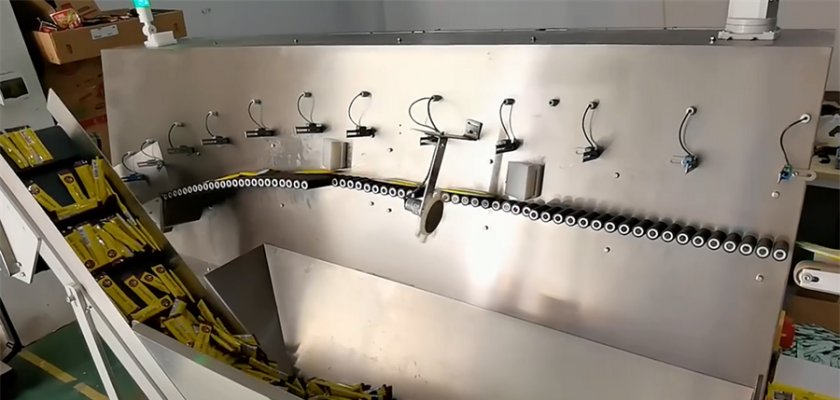 無序理料機(jī)也叫自動理袋機(jī),可在生產(chǎn)中單獨(dú)使用,也可以與裝盒機(jī)對接,完成無規(guī)則的堆積物料從集中到分散再到順序擺放的整個(gè)整理過程。它是將無規(guī)則堆積物料倒入儲料倉后,料倉輸送帶動作,將物料輸送至低速滾輪上。無序理料機(jī)通過低、中、高速滾輪的運(yùn)轉(zhuǎn),將物料逐一順序送出理袋機(jī)。 送出的物料根據(jù)包裝需要的形式或順序或堆疊進(jìn)入裝盒機(jī)輸送當(dāng)中完成下一工序的裝盒過程。