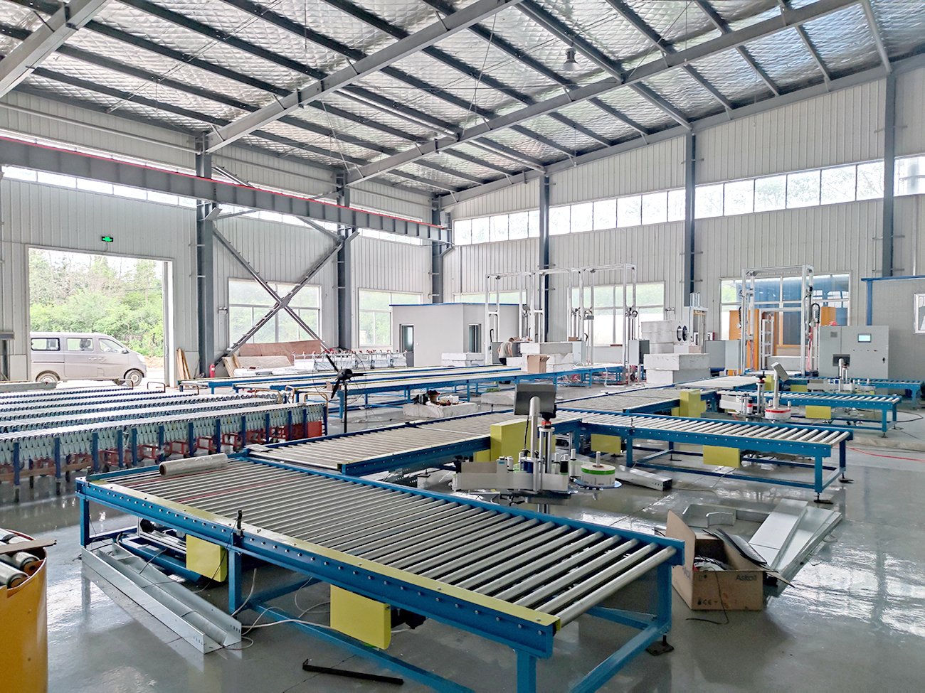 該條線體主要實(shí)現(xiàn)對聚氨酯泡沫板實(shí)現(xiàn)整理、計(jì)數(shù)、貼標(biāo)、打碼、翻轉(zhuǎn)、碼垛、輸送以及捆扎作業(yè),整線由PLC控制,實(shí)現(xiàn)無人化操作,也可以接駁在線纏繞包裝以及在線覆頂膜設(shè)備,實(shí)現(xiàn)對物料的全方位包裝。