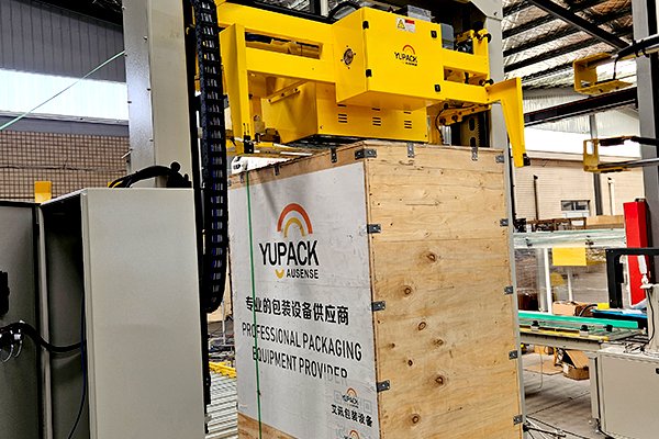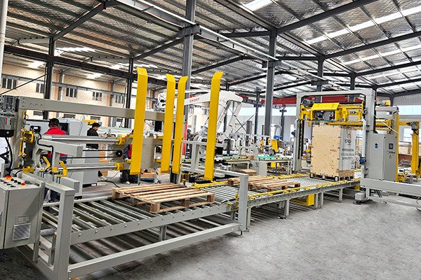 電動工具托盤碼垛通過式覆頂膜纏繞捆扎包裝線,是由自適應型供棧機、機器人碼垛機、棧板穿劍捆扎機、通過式覆頂膜機以及搖臂式纏繞包裝機組合而成。自適應型供棧機可根據(jù)不同托盤尺寸,自動調整機器并分配托盤,節(jié)省了人工換產(chǎn)的時間。